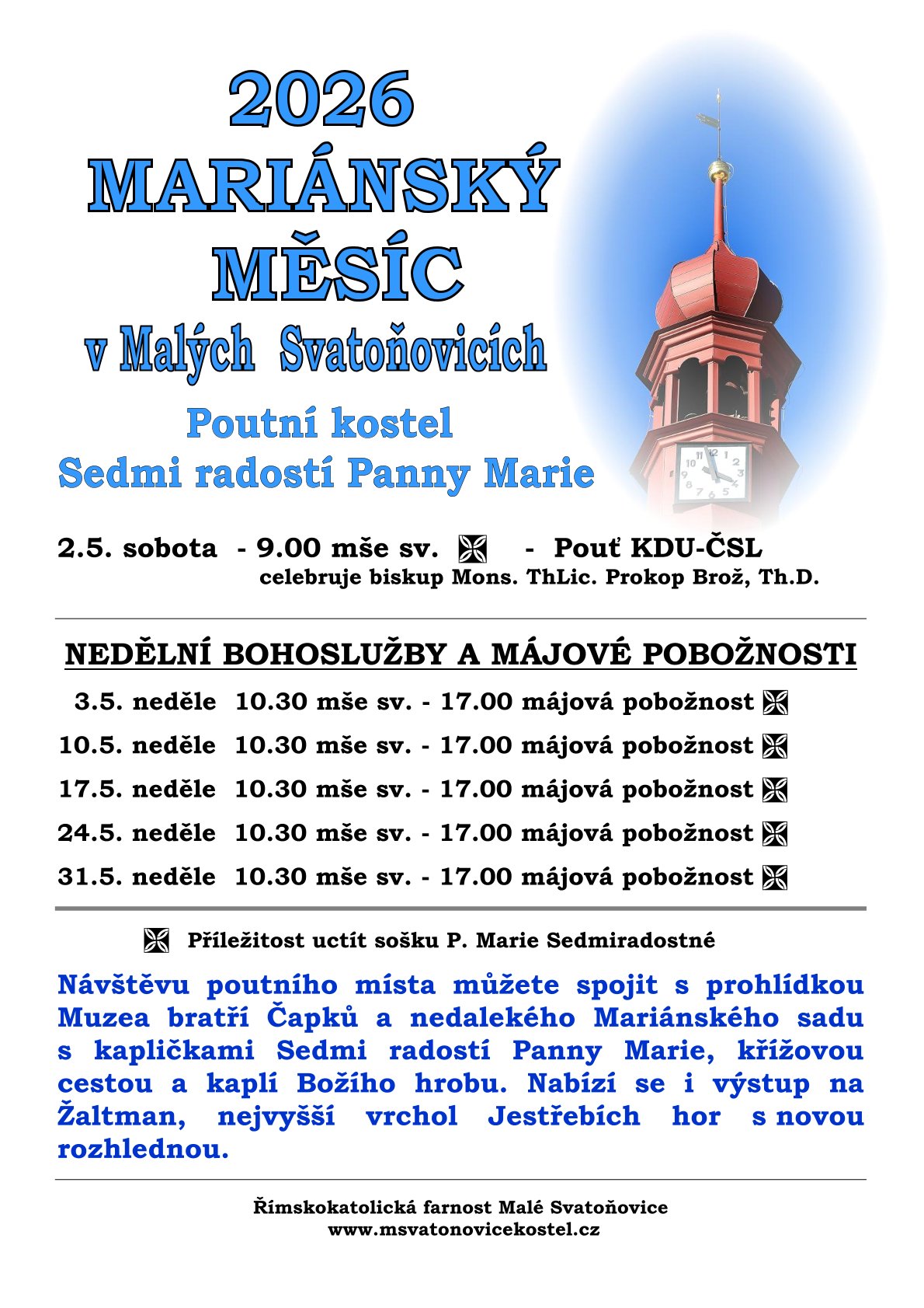 Otec Ladislav Hojný nás zdraví od mariánské malosvatoňovické studánkya a "dovoluji si poslat v příloze pozvánkuna letošní májové pobožnosti v M. Svatoňovicích."